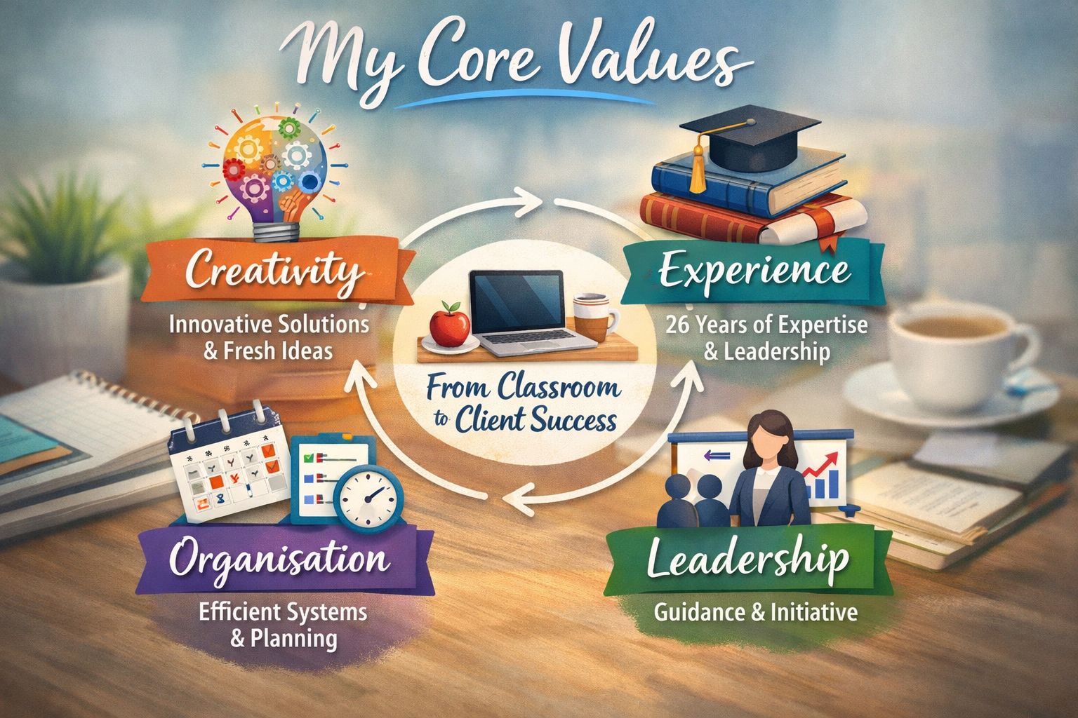 With my background in teaching and senior leadership, I bring more than support - I bring structure, initiative, and reliability. I anticipate what needs doing, keep things running smoothly, and take pride in making your working life easier.